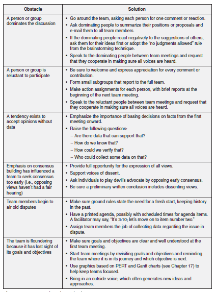 Time Management: Time is perhaps the most critical resource for any team. Team meeting time must be treated as the rare and valuable commodity that it is. It is up to the team leader and the facilitator to make every minute count, although every team member has this responsibility as well. Some practices that have proved useful follow:
